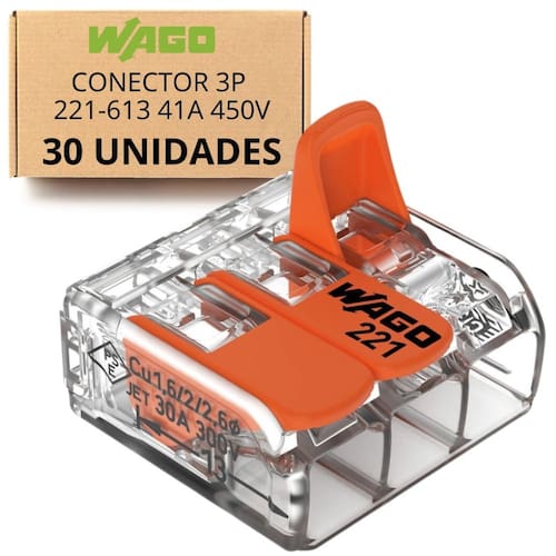 KIT C/ 30 Conector 3P 221-613 41A 450V Wago