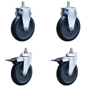 "Kit com 4 Rodas para Cargas Leves - Resistentes à CorrosãoAs rodas desse kit são ideais para uso em móveis e acessórios de utilidades comerciais, industriais e centros logísticos. Elas proporcionam resistência à corrosão, boa mobilidade, baixo ruído, maciez e conforto, além de não marcarem o piso. São perfeitas para trabalhos silenciosos e manobras manuais fáceis e confortáveis.Características:Rodízios fixos e giratórios para cargas leves.Composição da roda: Banda em borracha termoplástica de PVC cinza, núcleo em polipropileno e furo passante também na cor cinza.Dureza da roda: 75 Shore A (-10°C a 50°C).Garfo em aço com 2,65mm de espessura, acabamento zincado branco e dupla pista de esfera.Diâmetro da roda: 3 polegadas.Capacidade de carga: 60kg (modelo fixo por rodizio) e 85kg (modelo giratório por rodizio).Cor: Preto.Altura total: 108mm.Rosca UNC 1/2"", altura da rosca: 1"".Garantia 12 mesesConteúdo da Embalagem:2 Unidades de Roda Fixa Ref.: COLSON-GLE.312.BP.FP (capacidade de 60kg por rodizio)2 Unidades de Roda Giratória Ref.: COLSON-GLEF.312.BP.FP (capacidade de 85kg por rodizio)"