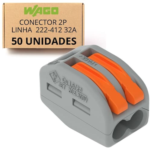 KIT C/ 50 CONECTOR 2P LINHA 222-412 32A WAGO