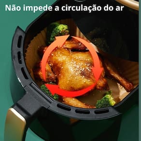A solução ideal para preparar o seu alimento saudável dentro da air fryer sem ter que fazer o trabalho chato de limpeza dela depois. O papel de air fryer evita o contato direto do alimento com a bandeja do air fryer. Dessa forma, acaba protegendo o seu equipamento dos resíduos dos alimentos, gorduras e temperos. Além disso, traz economia de tempo na limpeza e não afeta em nada no sabor do alimento. Após o uso, basta apenas descartá-lo no lixo. Seja para assar ou fritar o seu alimento, não se preocupe mais em ter que ficar limpando o seu air fryer depois de cada uso. O formato do nosso papel se assimila a uma forma redonda e se encaixa muito bem nos air fryers do mercado, atendendo os equipamentos de 3 a 5 litros. O papel é muito fácil de usar uma vez que já vem no formato de uma forma sendo necessário apenas colocar o alimento dentro e inserir dentro da air fryer. O papel possui 3 camadas e é antiaderente, resistente a óleo e a água. Por questão de segurança, recomendamos nunca ultrapassar a temperatura acima de 220 graus do seu air fryer. Além do uso em air fryers, também pode ser utilizado também dentro de fornos, microondas, panelas vaporizadoras também. Por ser leve e super prático, pode ser utilizado como prato para servir a comida na mesa. Depois de utilizado, basta somente descartá-lo no lixo. O uso do papel não irá afetar a eficiência do seu air fryer. A circulação do ar quente continuará passando calor para o papel, que posteriormente irá passar para os alimentos. Atenção: nunca pré-aqueça o seu air fryer com o papel dentro. Isso pode queimar o papel e iniciar fumaça. É muito importante que o alimento colocado dentro do papel tenha um peso suficiente para manter o papel firme dentro do air fryer. Caso contrário, o papel pode voar dentro do equipamento e queimar. Ficha técnica: quantidade: 50 unidades uso: air fryers de 3 a 5 litros medidas: 20 diâmetro externo x 16 diâmetro interno x 4,5 altura temperatura máxima suportada: 220c cor: bege