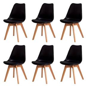 Kit C/6 Cadeiras Leda Charles Eames, Saarinen Wood Com Almofada Preta Cadeira Leda Charles Eames Wood Do designer finlandes Eero Saarinen, a cadeira com assento estofado Saarinen representa um trabalho icônico de design da década de 50, juntamente com a Eames. Sua concha ergonômica é produzida em PP (Polipropileno) e conta com assento fixo em tecido sintetico (PU). Seus pés são feitos em madeira com ótimo acabamento. Adequa-se perfeitamente para compor conjunto de mesa de jantar ou qualquer outro ambiente em sua casa ou escritório. Ideal para receber amigos e familiares com um toque de elegância e charme.