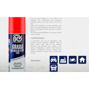Graxa Branca de Lítio Spray é um lubrificante com características que proporciona lubrificação pesada, não derrete, não sai com chuva ou água.