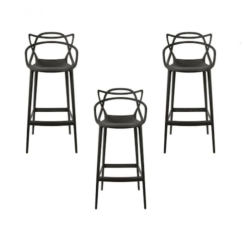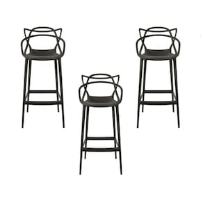 Kit C|3 Banqueta Média Masters Allegra - 66 Cm - Preto Modelo: Banqueta Allegra baixa 66 cm Com design moderno a banqueta allegra é ideal para decorar qualquer ambiente. A banqueta possui encosto vazado e descanso para os pés, prática e confortável. Ideal para deixar a sua bancada de alimentação ou bar mais moderna.