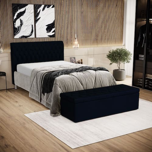 O Kit Bellatrix junto com a Calçadeira Sagitarius foi inspirada para você, que busca um alto estilo, design e um ótimo custo benefício. Ela possui detalhes em capitonê e um ótimo acabamento, junto com a calçadeira que possui um design único que dão um toque de sofisticação .O produto possui dois pés de 12 cm e 2 frames para a sustentação do box, não sendo necessário furar a sua cama, apenas encaixa-la nos suportes da cabeceira. Adquira já!