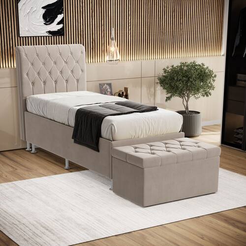 O Kit Bellatrix junto com a Calçadeira Sagitarius foi inspirada para você, que busca um alto estilo, design e um ótimo custo benefício. Ela possui detalhes em capitonê e um ótimo acabamento, junto com a calçadeira que possui um design único que dão um toque de sofisticação .O produto possui dois pés de 12 cm e 2 frames para a sustentação do box, não sendo necessário furar a sua cama, apenas encaixa-la nos suportes da cabeceira. Adquira já!