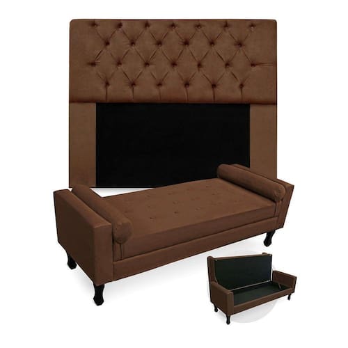 Kit Cabeceira + Calçadeira Baú Felix King Size 195cm Suede - Renascer Decor Cor:marrom
