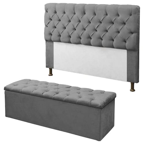O Conj Mirage possui um design único e totalmente diferenciado, que vai levar um toque de aconchego e o charme final que seu quarto tanto precisa. Uma ótima composição para deixar seu quarto com luxo, confortável e organizado. Produtos com estrutura de madeira de eucalipto, ecologicamente correto, espuma de poliuretana, revestimento em suede e detalhes com botões tipo capitonê.