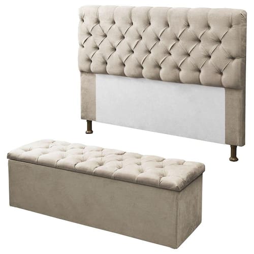 O Conj Mirage possui um design único e totalmente diferenciado, que vai levar um toque de aconchego e o charme final que seu quarto tanto precisa. Uma ótima composição para deixar seu quarto com luxo, confortável e organizado. Produtos com estrutura de madeira de eucalipto, ecologicamente correto, espuma de poliuretana, revestimento em suede e detalhes com botões tipo capitonê.