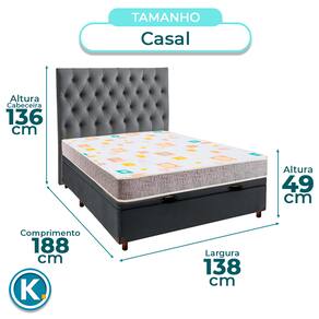Kit Cabeceira + Cama Box Bau + Colchão Casal D20 D20 Inducol - Cinza