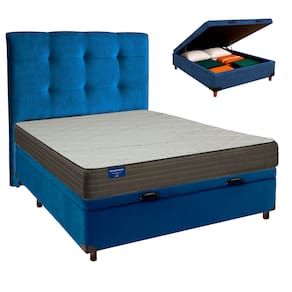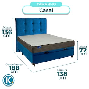 Kit Cabeceira + Cama Box Bau + Colchão Casal D33 Orthotech Inducol - Azul