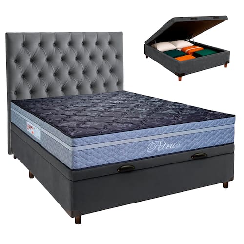 Kit Cabeceira + Cama Box Bau + Colchão Casal Molas Ensacadas Petrus Paropas - Cinza