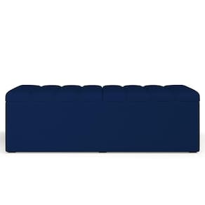 Kit Cabeceira Cama Box Casal King 195cm Com Calçadeira Baú Dália W01 Facto Azul Marinho - Lyam