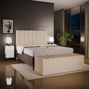 Ter móveis com personalidade, compactos, confortáveis e que agreguem valor em sua decoração é um desejo nem sempre tão fácil de ser alcançado, ainda mais se pensarmos que eles precisam harmonizar bem com o restante da sua mobília. O Kit Cabeceira Cama Box Casal 195cm Com Calçadeira Recamier Baú Dália preenche esses requisitos amplamente, superando todas as suas expectativas! Uma combinação com muita graça e comodidade. Sua calçadeira possui generoso espaço interno, que te auxiliará na acomodação de calçados, cobertores e/ou outros pertences, além de ser muito útil para que você possa calçar seus sapatos com maior agilidade, além de garantir um assento adicional no cômodo, o apoio perfeito para seu quarto.Como se não bastasse toda sua beleza, ainda contrastam muito bem com o ambiente e contam com revestimento de máxima qualidade, cabe mencionar também a estrutura em madeira, bastante firme e resistente, permitindo maior vida útil aos produtos. Você merece descansar em um lugar agradável, não perca esta oportunidade aconchegante e imperdível!Dimensões da Cabeceira (L x A x P)195 x 120 x 8 cm Altura do chão à base: 55 cm Dimensões do suporte Frame (L x A x P)5,5 x 13,5 x 16,5 cm Dimensões da Calçadeira (L x A x P)195 x 50 x 48 cm Medidas Internas:Altura sem a tampa: 45 cmAltura somente da tampa: 04,5 cmLargura: 126 cmProfundidade: 42 cm Características:Estrutura em madeira reflorestada.Revestimento em Suede na cor Bege.Densidade da Espuma D-18.Dobradiças de ferro banhadas em zinco, na cor preto.Possui sapatas plásticas.Acompanha todos os acessórios para fixação.Acompanha suporte frame produzido em chapa de ferro com acabamento em esmalte PU na cor alumínio.Peso suportado: até 100kg distribuídos. - Por se tratar de estofado as medidas podem ter uma pequena variação de até 3 cm.- A tonalidade do produto real poderá ter ligeira variação devido o lote de tecidos. Observações importantes:- Produto para uso residencial em ambiente interno, não devendo ficar exposto diretamente ao sol, calor e umidade excessivos.- As imagens são meramente ilustrativas, não acompanham objetos de decoração e eletrônicos.- Ao receber a mercadoria, o cliente deve verificar as condições da embalagem, caso haja alguma não assine o comprovante de recebimento.- Montagem, desmontagem e outras instalações serão de responsabilidade do cliente. Não nos responsabilizamos, no ato da , por subir escadas/elevadores ou pelo transporte por guincho em apartamentos. Eventuais despesas são de responsabilidade do comprador.- Confira as dimensões do produto e certifique-se de que passará normalmente por supostos elevadores, portas, escadas e/ou corredores de sua residência. Color: Bege | ColorFamily: Bege | ColorSimple: Bege | ColorSupplier: Bege | Material: Madeira | MaterialFamily: Madeira | Model: Dália | OriginCountry: Nacional | OriginState: PR | ProductContents: 01 Cabeceira e 01 Calçadeira | ProductHeight: 120 cm | ProductInstructions: Produto para uso em ambiente interno, nao devendo ficar exposto ao sol, calor e umidade excessivos. | ProductLength: 48 cm | ProductWarranty: 90 dias após o recebimento do produto | ProductWeight: 30 kg | ProductWidth: 195 cm | SizeDescription: Cabeceira: Altura 120 cm x Largura 195 cm x Profundidade 8 cm Calçadeira: Altura 50 cm x Largura 195 | SupplierSimpleName: Kit Cabeceira Cama Box Casal King 195cm com Calçadeira Baú Dália W01 Suede Bege - Lyam