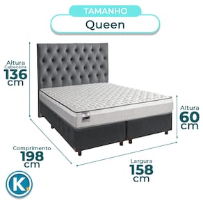 Conjunto Queen Colchão Hanover + Cama BoxColchão Queen com 22cm de altura, ideal para conforto e praticidade no dia a diaRevestimento em Jacquard e Poliéster, unindo sofisticação e resistênciaSuporte de até 130kg, oferecendo firmeza e segurança para diferentes perfisBase Box Queen Universal em VeludoMedidas Queen: 158x198cm, ideal para colchões maiores e mais espaçososEstrutura reforçada com suporte de até 150kg, garantindo segurança e durabilidadeFicha Técnica Colchão:Modelo: HanoverMarca: InducolTamanho: QueenTecido: Jacquard/PoliésterLargura: 158cmComprimento: 198cmAltura: 22cmSuporte de Peso: 130KgGarantia: 3 MesesFicha Técnica Cama Box:Modelo: UniversalMarca: NatureTamanho: QueenTecido: VeludoLargura: 158cmComprimento: 198cmAltura: 25cmAltura dos Pés: 13cmMaterial dos Pés: MadeiraSuporte de Peso: 150KgPeso: 30KgGarantia: 3 MesesAtenção:Antes da compra certifique-se de que o produto passa por elevadores, portas e corredores.As transportadoras não realizam entregas por escadas ou içamentos.Caso o item não caiba no elevador, a entrega será considerada concluída no térreo do prédio.A cor e tonalidade do produto pode variar de acordo com o dispositivo que o usuário está acessando.