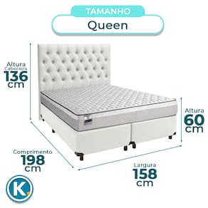 Conjunto Queen Colchão Hanover + Cama BoxColchão Queen com 22cm de altura, ideal para conforto e praticidade no dia a diaRevestimento em Jacquard e Poliéster, unindo sofisticação e resistênciaSuporte de até 130kg, oferecendo firmeza e segurança para diferentes perfisBase box Queen ideal para otimizar o espaço do quarto com praticidadeRevestimento em Material Sintético: fácil de limpar e com visual modernoEstrutura firme e resistente com suporte para até 150kgFicha Técnica Colchão:Modelo: HanoverMarca: InducolTamanho: QueenTecido: Jacquard/PoliésterLargura: 158cmComprimento: 198cmAltura: 22cmSuporte de Peso: 130KgGarantia: 3 MesesFicha Técnica Cama Box:Modelo: UniversalMarca: NatureTamanho: QueenTecido: Material Sintético Largura: 158cmComprimento: 198cmAltura: 25cmAltura dos Pés: 13cmMaterial dos Pés: MadeiraSuporte de Peso: 150KgPeso: 30KgGarantia: 3 MesesAtenção:Antes da compra certifique-se de que o produto passa por elevadores, portas e corredores.As transportadoras não realizam entregas por escadas ou içamentos.Caso o item não caiba no elevador, a entrega será considerada concluída no térreo do prédio.A cor e tonalidade do produto pode variar de acordo com o dispositivo que o usuário está acessando.