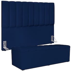 Ter móveis com personalidade, compactos, confortáveis e que agreguem valor em sua decoração é um desejo nem sempre tão fácil de ser alcançado, ainda mais se pensarmos que eles precisam harmonizar bem com o restante da sua mobília. O Kit Cabeceira Cama Box Casal Queen 160cm Calçadeira Baú Dália W01 Facto Azul Marinho - Lyam Decor preenche esses requisitos amplamente, superando todas as suas expectativas! Uma combinação com muita graça e comodidade. Sua calçadeira possui generoso espaço interno, que te auxiliará na acomodação de calçados, cobertores e/ou outros pertences, além de ser muito útil para que você possa calçar seus sapatos com maior agilidade, além de garantir um assento adicional no cômodo, o apoio perfeito para seu quarto.