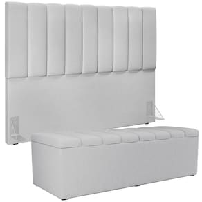 Ter móveis com personalidade, compactos, confortáveis e que agreguem valor em sua decoração é um desejo nem sempre tão fácil de ser alcançado, ainda mais se pensarmos que eles precisam harmonizar bem com o restante da sua mobília. O Kit Cabeceira Cama Box Casal Queen 160cm Com Calçadeira Baú Dália W01 Linho Cinza - Lyam Decor preenche esses requisitos amplamente, superando todas as suas expectativas! Uma combinação com muita graça e comodidade. Sua calçadeira possui generoso espaço interno, que te auxiliará na acomodação de calçados, cobertores e/ou outros pertences, além de ser muito útil para que você possa calçar seus sapatos com maior agilidade, além de garantir um assento adicional no cômodo, o apoio perfeito para seu quarto.