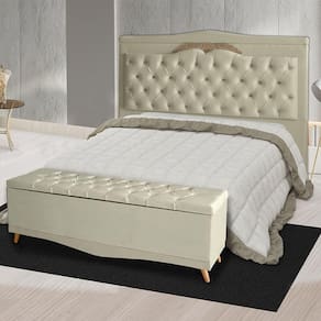 Kit Cabeceira De Cama E Calçadeira Baú Madri Queen 160 Cm Suede Porcelana Eli Móveis E Decoração