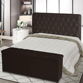 Kit Cabeceira De Cama Box E Calçadeira Baú Paris Queen 160 Cm Capitonê Suede Marrom Eli Móveis