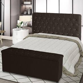 Kit Cabeceira De Cama E Calçadeira Baú Paris Queen 160 Cm Capitonê Suede Marrom Do Lar Móveis