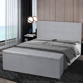 Kit Cabeceira e Calçadeira Baú Casal 1,40m Berlim Corano - Pallazio - Cinza