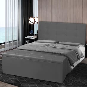 Kit Cabeceira e Calçadeira Baú Casal 1,40m Berlim Suede Cinza Dal Poz Estofados
