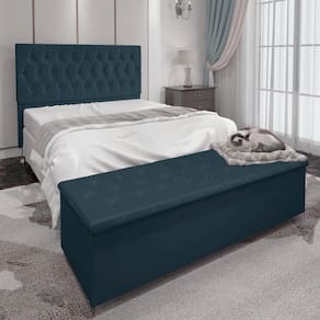 Você procura uma cabeceira e uma calçadeira para completar o seu quarto? Apresentamos a você esse lindo kit do modelo Madrid, a calçadeira baú vai deixar seu quarto muito mais organizado, e esse modelo com esses detalhes em botonê, e seu tecido suede vai trazer um toque mais aconchegante ao seu quarto, cofira as características e dimensões.