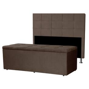 Kit Cabeceira E Calçadeira Baú Casal 1,40m Roma Suede - Pallazio Cor Marrom