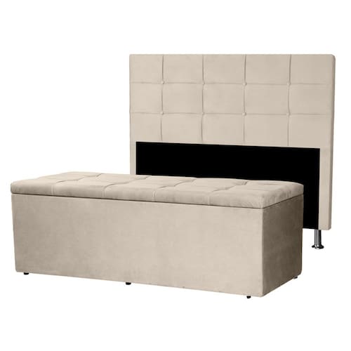 Kit Cabeceira e Calçadeira Baú Casal 1,40m Roma Suede - Pallazio - Bege
