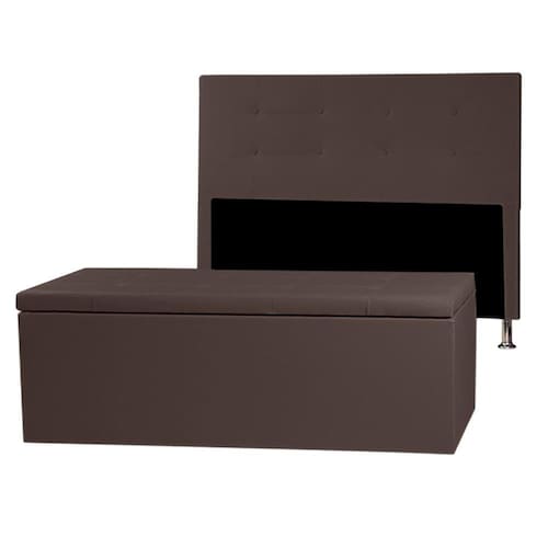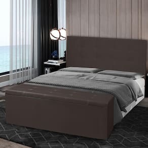 Kit Cabeceira e Calçadeira Baú Casal Queen 1,60m Berlim Material Sintético Marrom Dal Poz Estofados