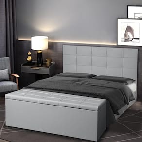 Kit Cabeceira e Calçadeira Baú Casal Queen 1,60m Roma Material Sintético Cinza Dal Poz Estofados