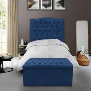 Kit Cabeceira E Calçadeira Baú Dunas Solteiro 90 Cm - Veludo Azul
