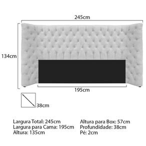 - Largura Total: 245 cm (suporta cama de até 195 cm);
