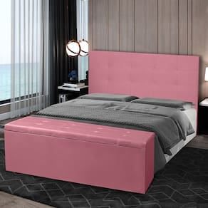Kit Cabeceira e Calçadeira Baú Queen 1,60m Berlim Suede - Pallazio - Rosa