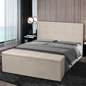 Confeccionados com material de alta qualidade, ambos os itens do kit apresentam acabamento com materias resistentes. A cabeceira serve como um elemento decorativo central, enquanto a calçadeira baú oferece uma solução prática para organizar roupas de cama, travesseiros e outros itens.