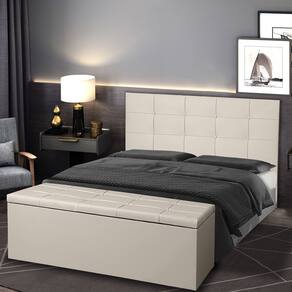 Confeccionados com material de alta qualidade, ambos os itens do kit apresentam acabamento com materias resistentes. A cabeceira serve como um elemento decorativo central, enquanto a calçadeira baú oferece uma solução prática para organizar roupas de cama, travesseiros e outros itens.