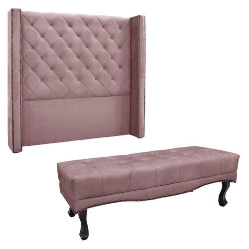 Kit Cabeceira E Calçadeira Recamier Casal 1,40m Vicenza Veludo - Pallazio Cor Lilás