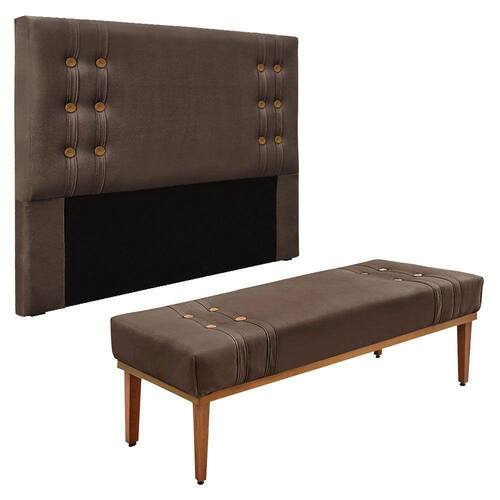 Kit Cabeceira E Calçadeira Recamier Casal 1,40m Gênova Veludo Marrom - Pallazio