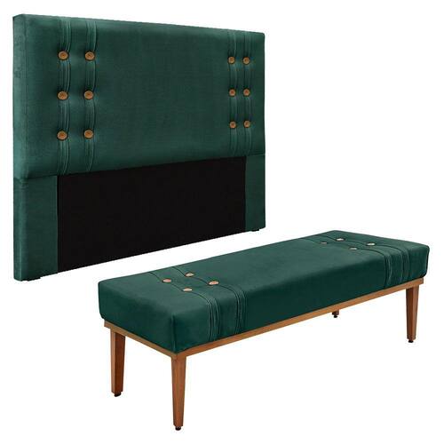 Kit Cabeceira e Calçadeira Recamier King 1,95m Gênova Veludo - Pallazio - Verde