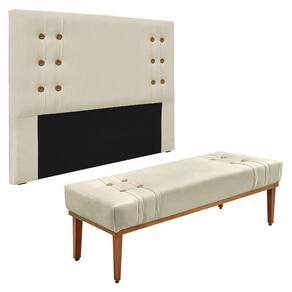 Kit Cabeceira E Calçadeira Recamier Solteiro 0,90M Bege -