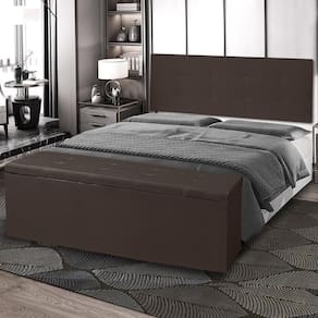 Kit Cabeceira Painel e Calçadeira Baú Casal 1,40m Berlim Material Sintético Marrom Dal Poz Estofados