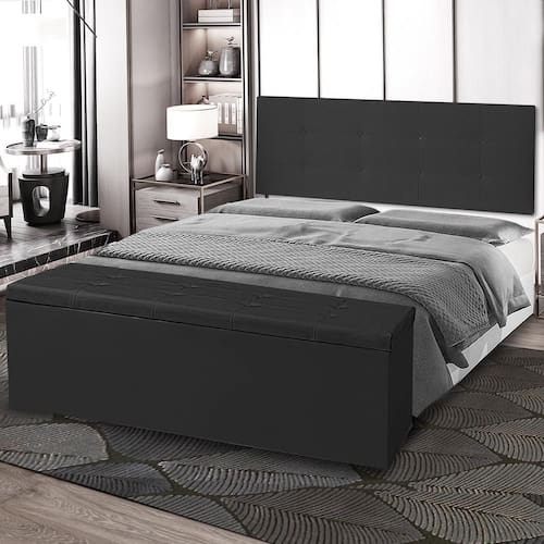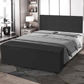 Kit Cabeceira Painel e Calçadeira Baú Casal 1,40m Berlim Material Sintético Preto Dal Poz Estofados
