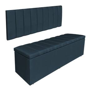 Kit Cabeceira Painel e Calçadeira Baú Casal 1,40m Londres Veludo Azul Marinho Dal Poz Estofados