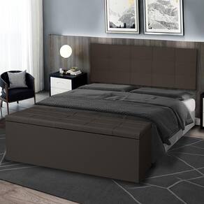 Kit Cabeceira Painel e Calçadeira Baú Casal King 1,95m Roma Material Sintético Marrom Dal Poz Estofados