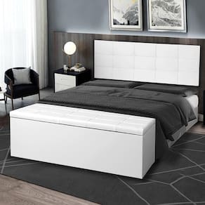Kit Cabeceira Painel e Calçadeira Baú Casal Queen 1,60m Roma Material Sintético Branco Dal Poz Estofados