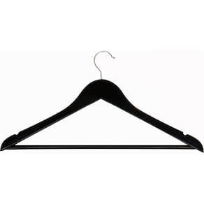 Para quem busca durabilidade e elegância o Cabide De Madeira Adulto Com Barra Para Calca Laca Preto da Vizapi é a escolha ideal. Feito em madeira com cava especial e gancho de metal são ideais para calças ou roupas com alças finas, além de versáteis para serem utilizados para organizar roupas de diversos tipos.