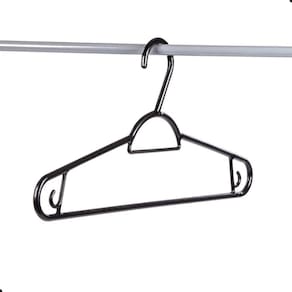 O Cabide Plástico Adulto Pendura Mais Preto 40cm Easy Sanremo 5 Unidades pode ser para todos os tipos de roupa e possui excelente relação custo-benefício. Comportando perfeitamente duas peças, é leve, resistente e durável. Esse cabide Sanremo é ideal para camisetas, casacos leves, blusas e vestidos com alça e suporta até 3,2 kg.