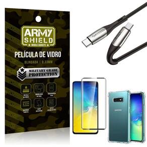 Cabo usb tipo c para usb-c + capinha + película vidro 3d - armyshield