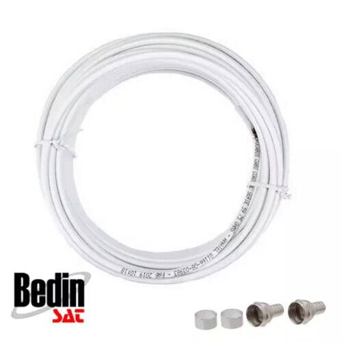 Tipo do produto: Cabo Coaxial; Marca: BedinSat; RG-59; 15 Metros; 2x Conector f RG6 com Anel; Porcentual de malha (%):67%; Impedância nominal: 75.