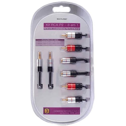 1 Kit cabos de áudio RCA P2 com 3 em 1 Multilaser WI286 Dados de Embalagem Peso Total Produto + Embalagem :147 gr Altura :25 cm Largura :13 cm Profundidade :3 cm